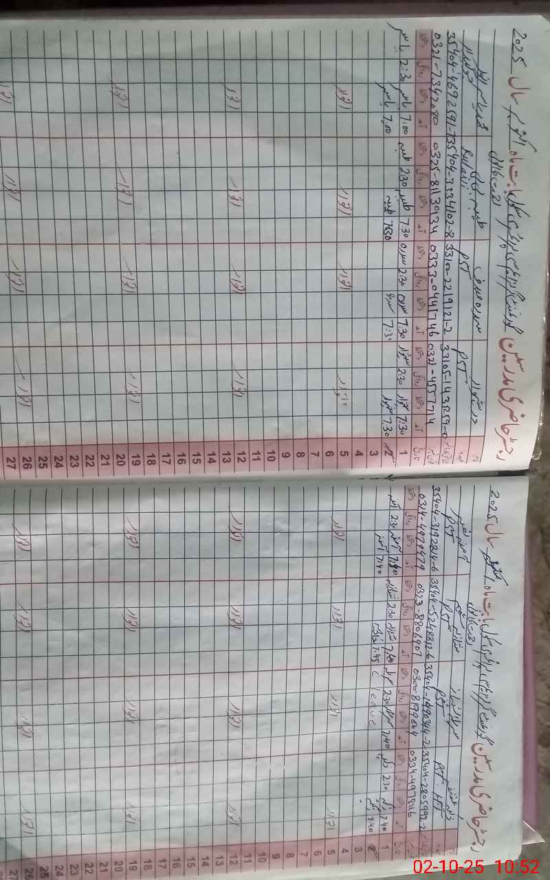 | CNIC | Full Name | Designation | R/C | Absence During Last Calender Month |