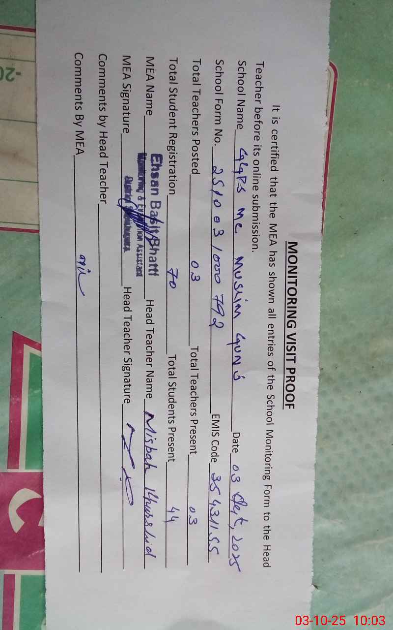 | EMIS Code: 35431155 | Name of School: GGPS MC MUSLIM GUNJ | |||