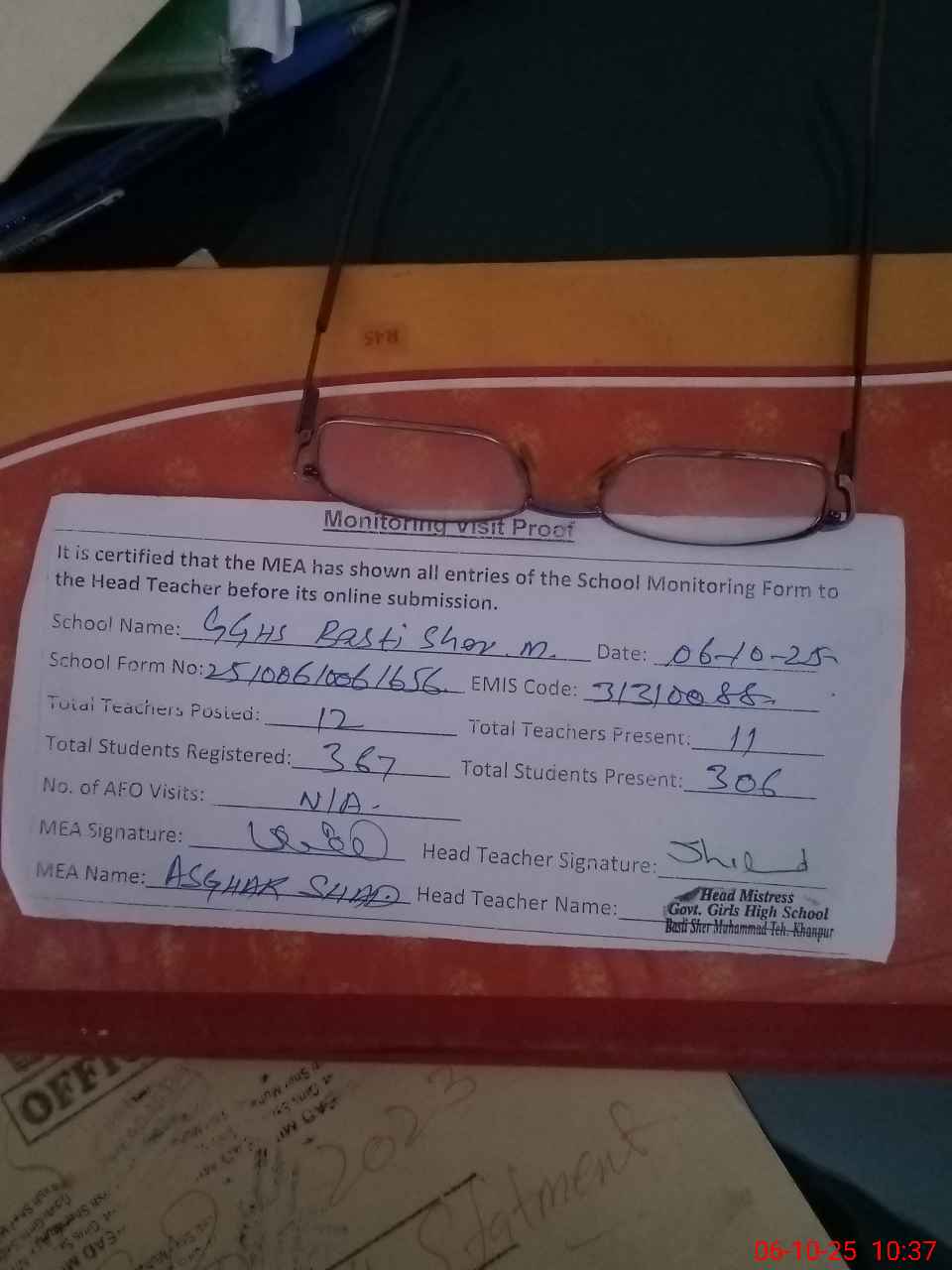 | EMIS Code: 31310088 | Name of School: GGHS BASTI SHAIR MUHAMMAD | |||