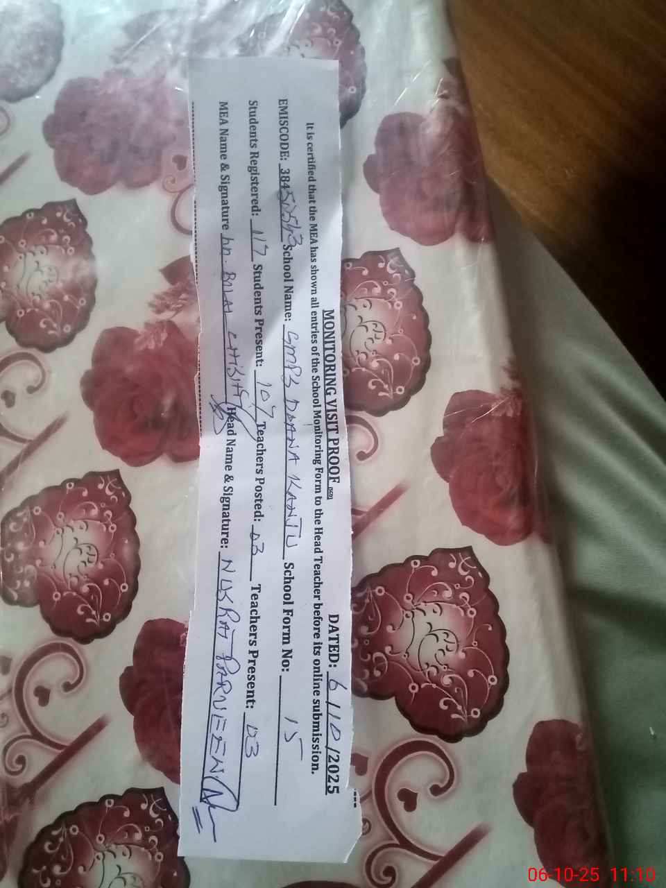 | Certified that this School was Inspected by the Undersigned MEA/DMO Today and the Information Stated Above is as Per Record. | |||||