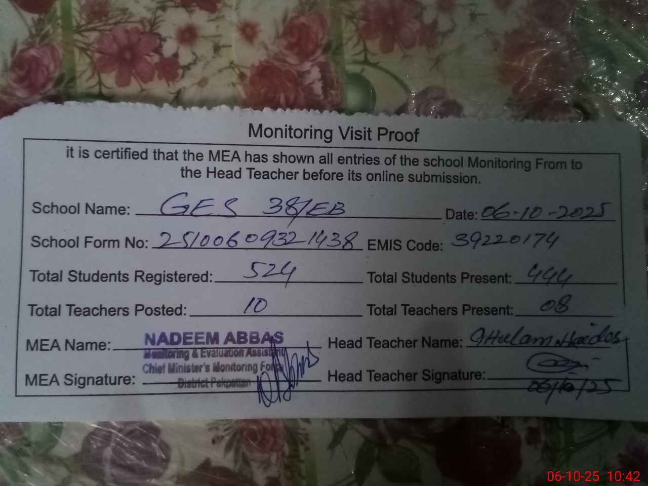 | EMIS Code: 39220174 | Name of School: GES 38 EB | |||