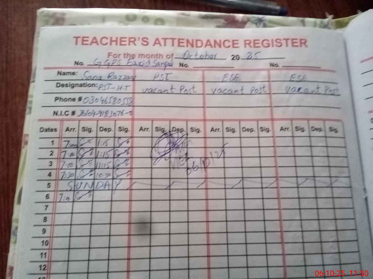 | Name: Sa**** Ra**** Designation: (School Headmaster's/Headmistress's) PST Phone/Cell Number: 03**** |