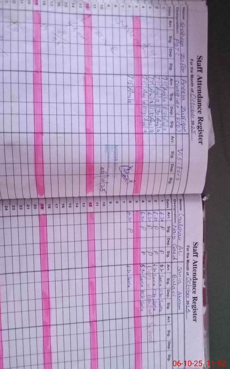 | Name: Uz**** Ba**** Designation: (School Headmaster's/Headmistress's) Headmistres Phone/Cell Number: 03**** |