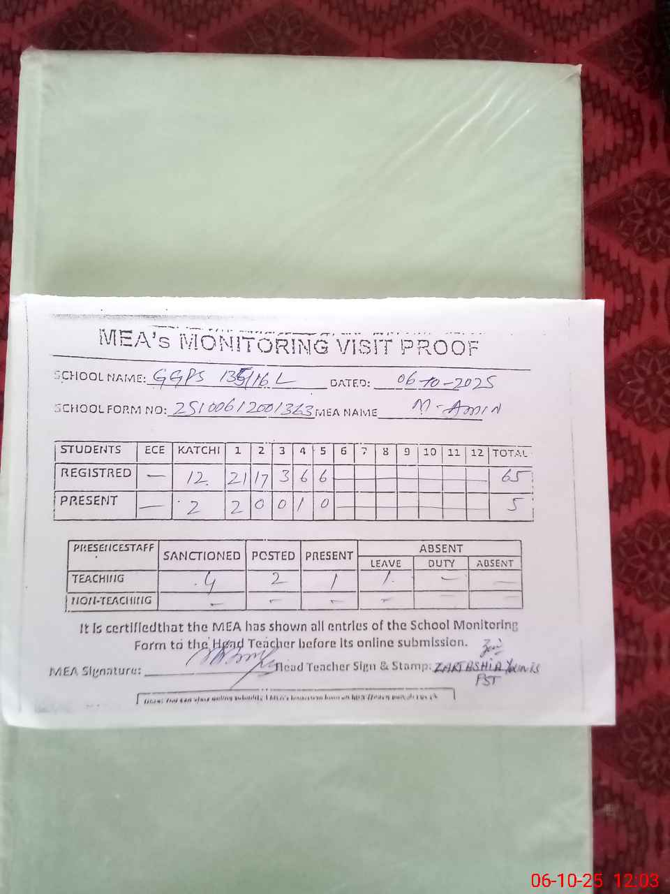 | EMIS Code: 36430290 | Name of School: GGPS 135/16-L, P/O 135/16-L STUNZABAD, MIAN CHANNU | |||
