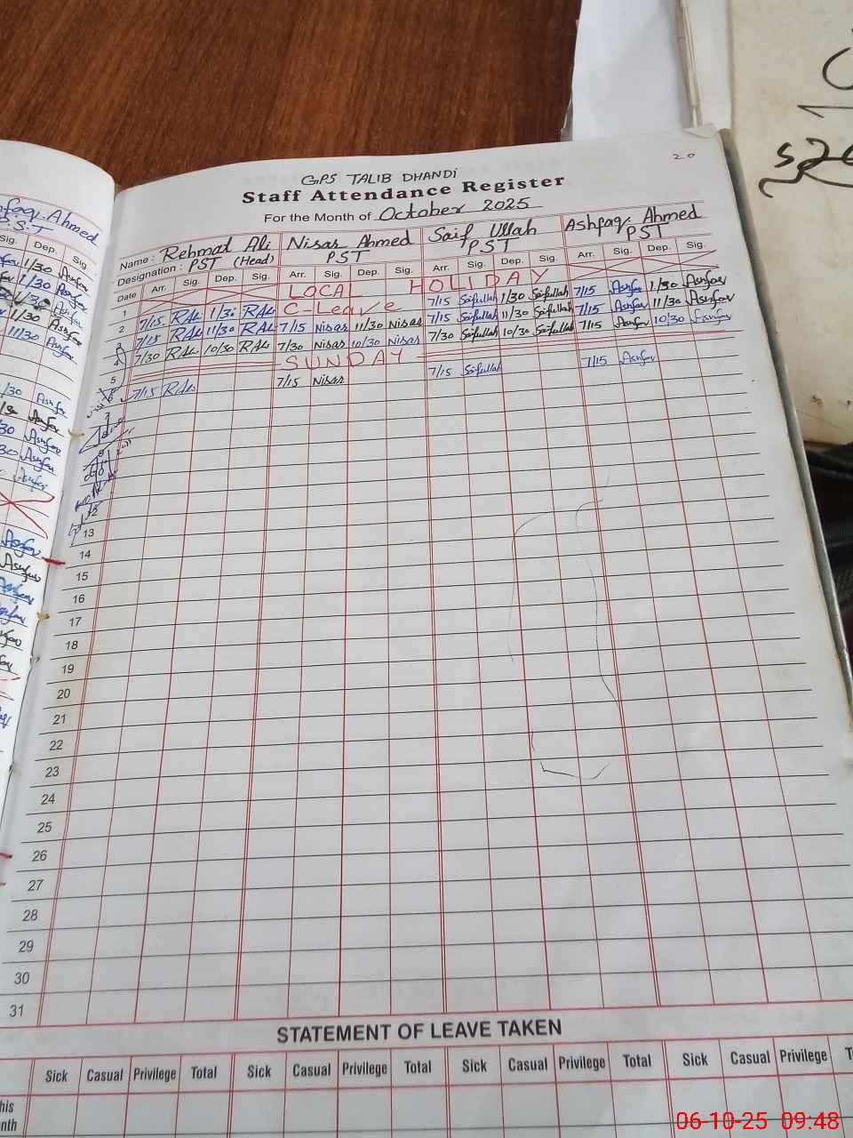 | EMIS Code: 31340133 | Name of School: GPS TALIB DHANDI | |||