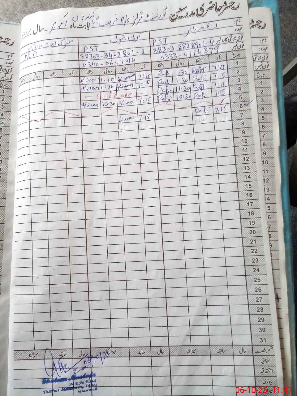 | Name: SE**** KH**** Designation: (School Headmaster's/Headmistress's) PST Phone/Cell Number: 03**** |