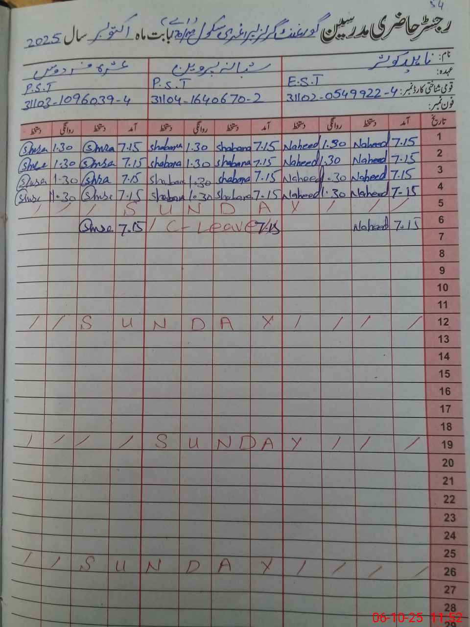 | 31**** | Sh**** Pe**** | 1 | 4 | 0 | 0 | 0 | 0 | 0 | 0 | 0 | 4 | Absent (Un-Authorized) | |