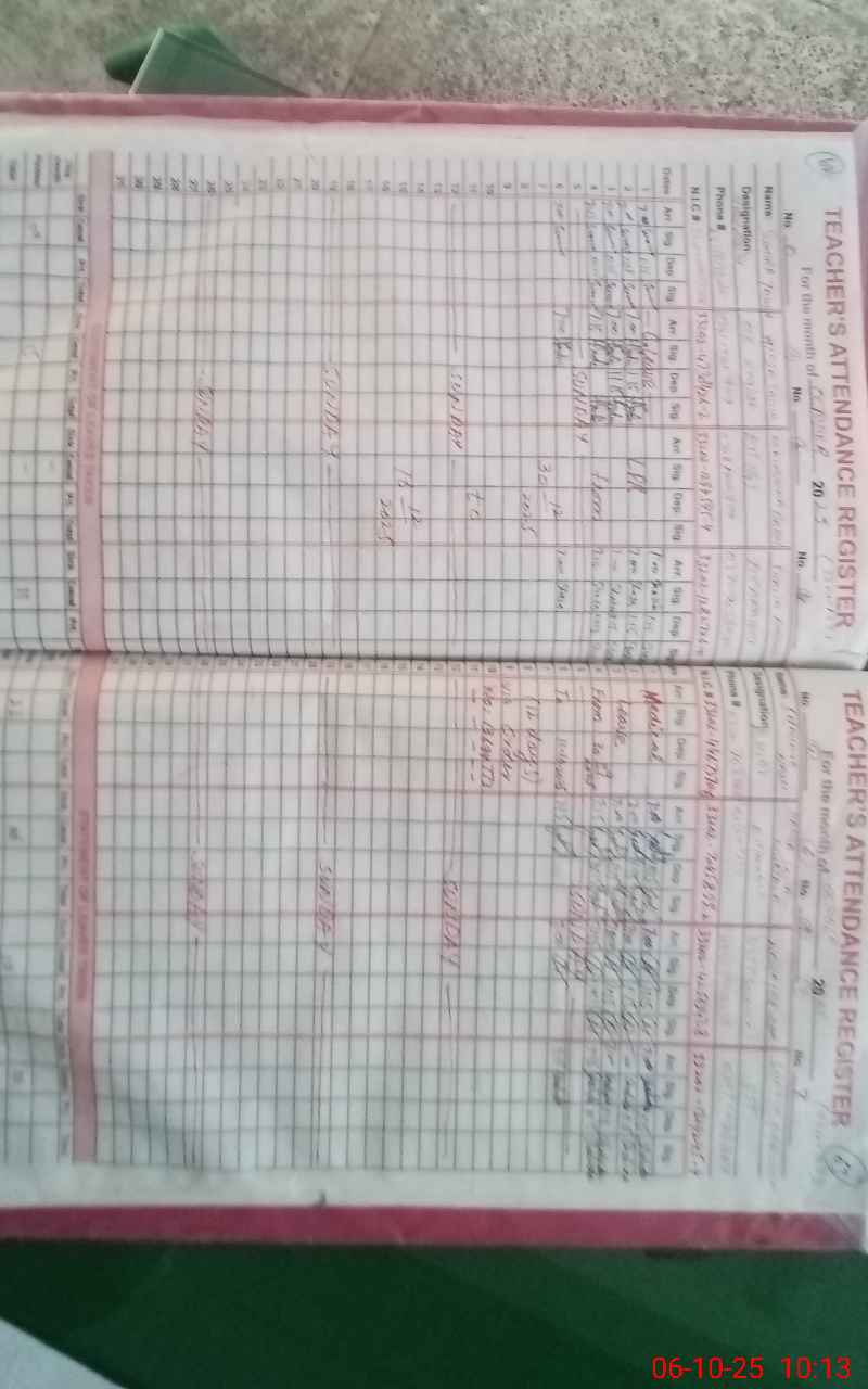 | CNIC | Full Name | Designation | R/C | Absence During Last Calender Month |