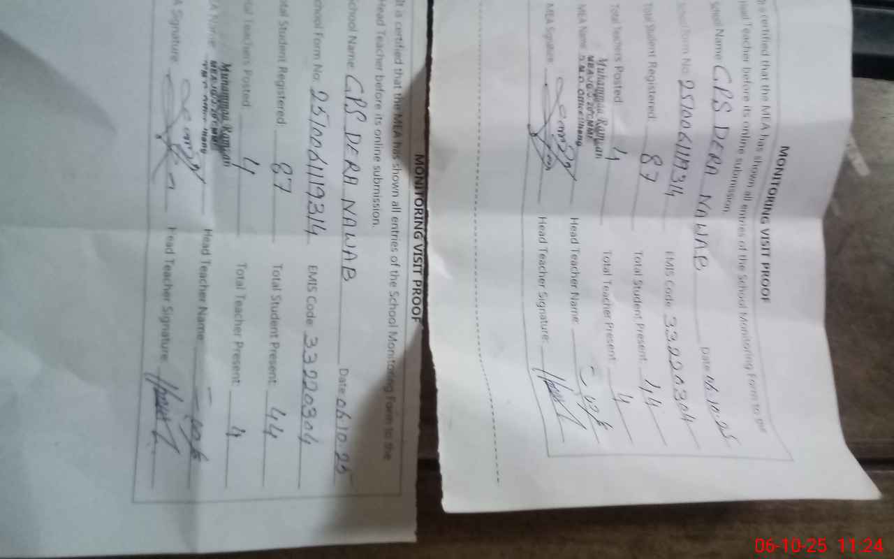 | Certified that this School was Inspected by the Undersigned MEA/DMO Today and the Information Stated Above is as Per Record. | |||||
