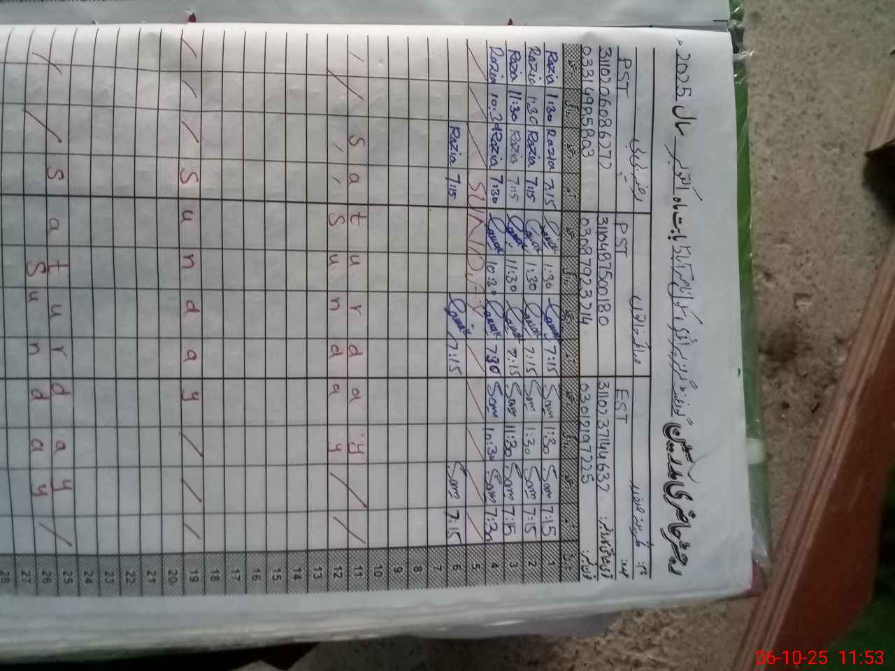 | Name: SA**** SA**** Designation: (School Headmaster's/Headmistress's) EST G Phone/Cell Number: 03**** |