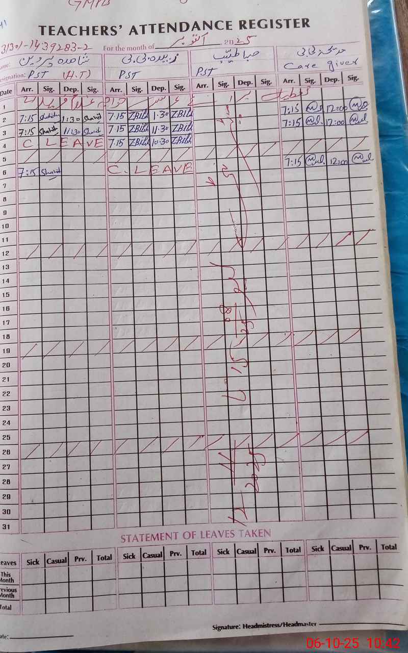 | Name: Sh**** Pe**** Designation: (School Headmaster's/Headmistress's) PST Phone/Cell Number: 03**** |