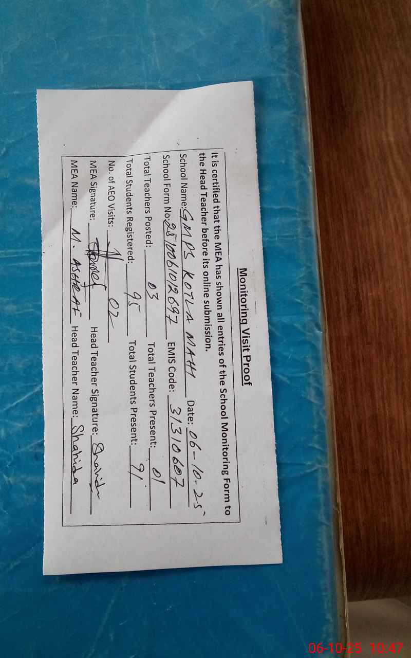 | EMIS Code: 31310607 | Name of School: GMPS KOTLA MAHI | |||