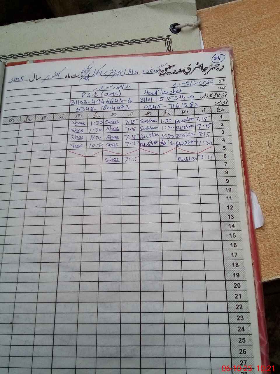 | Name: Bu**** Sh**** Designation: (School Headmaster's/Headmistress's) PST Phone/Cell Number: 03**** |