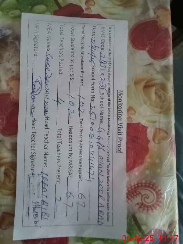 | Attendance Register | Head Teacher | MEA with School | Visit Proof |
