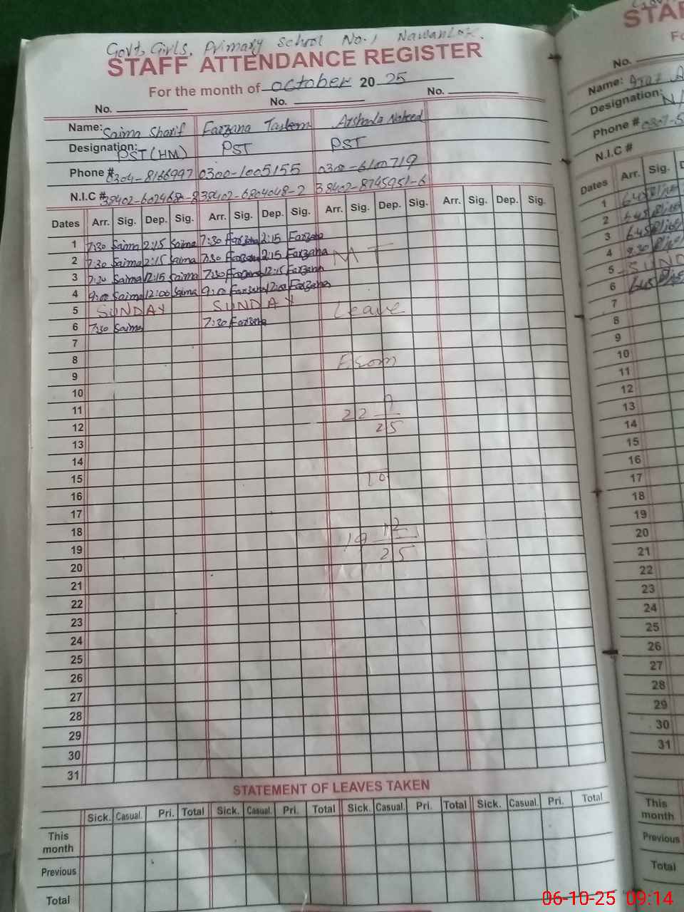 | 38**** | Ar**** Na**** | PST | Regular | 12 | 0 | 0 | 9 | 0 | 0 | 0 | 0 | 3 | Maternity |