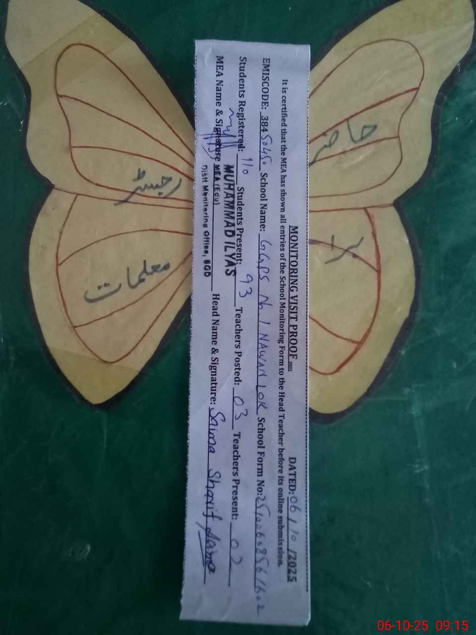 | Certified that this School was Inspected by the Undersigned MEA/DMO Today and the Information Stated Above is as Per Record. | |||||