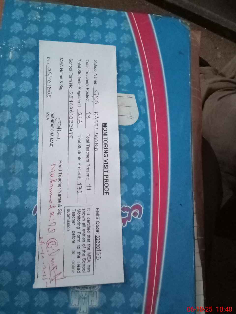 | EMIS Code: 32330155 | Name of School: GHS BASTI MOND | |||