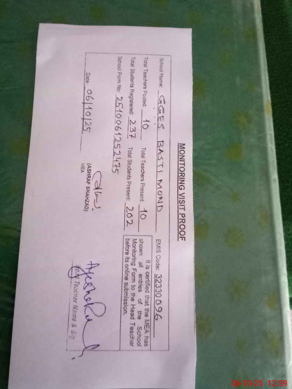 | EMIS Code: 32330096 | Name of School: GGES BASTI MOND | |||