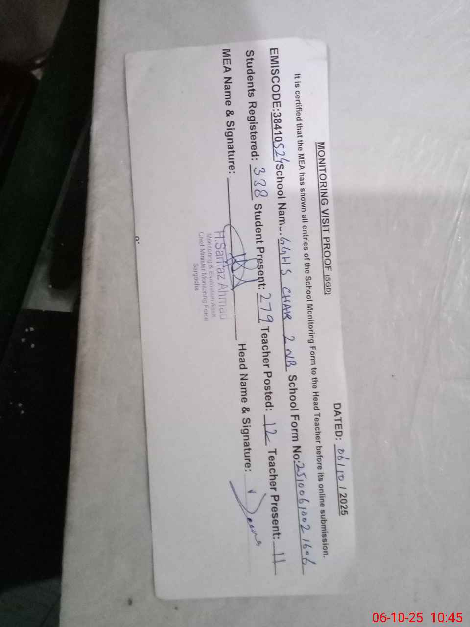 | EMIS Code: 38410524 | Name of School: GGHS CHAK NO.2 NB | |||