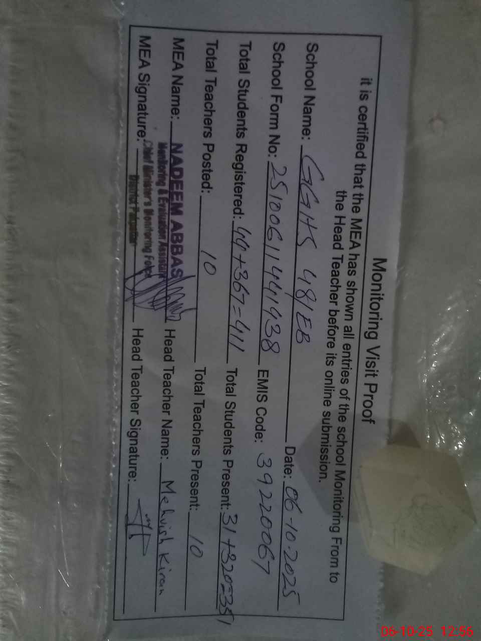 | EMIS Code: 39220067 | Name of School: GGHS 48 EB | |||