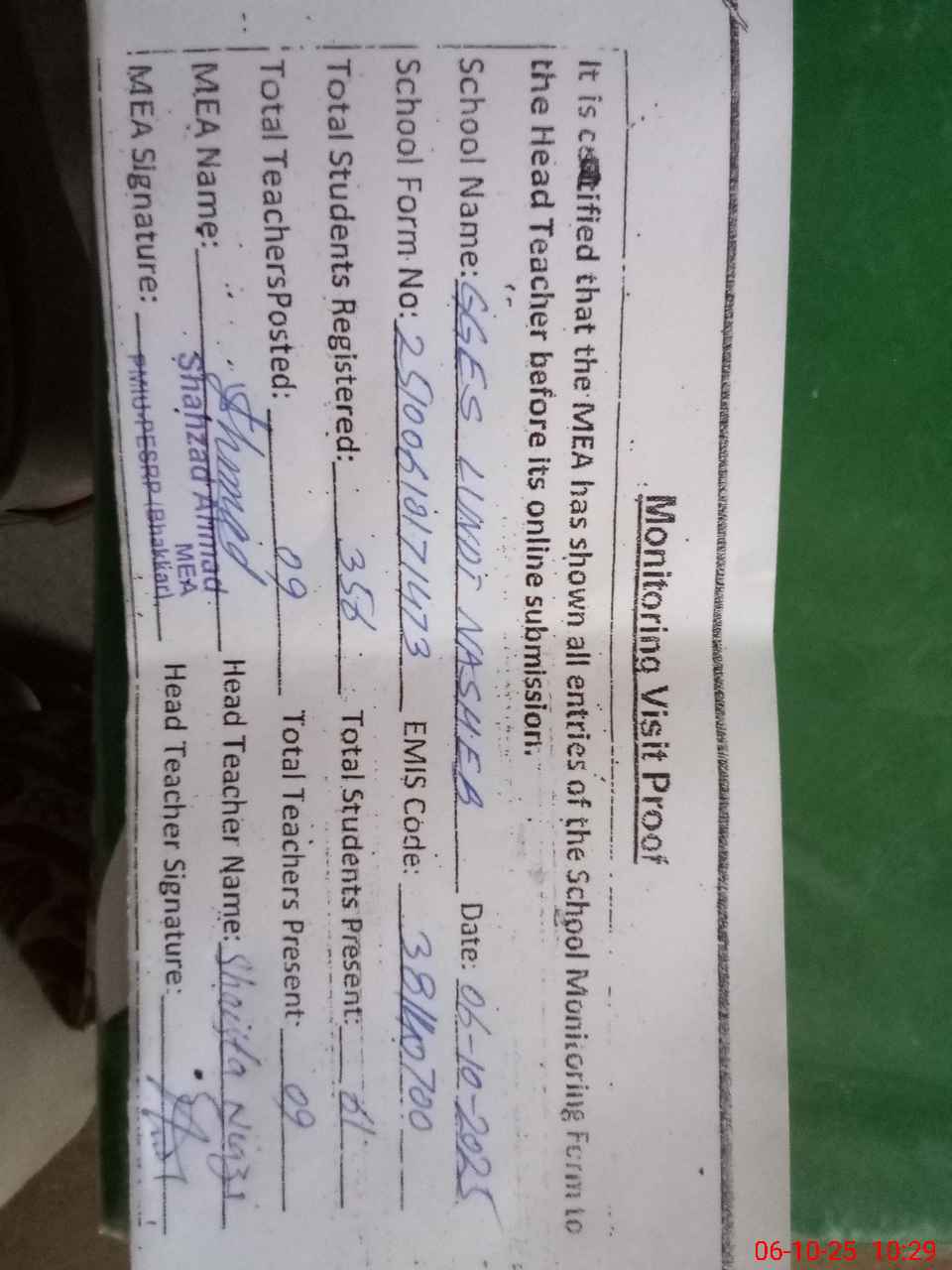 | Certified that this School was Inspected by the Undersigned MEA/DMO Today and the Information Stated Above is as Per Record. | |||||