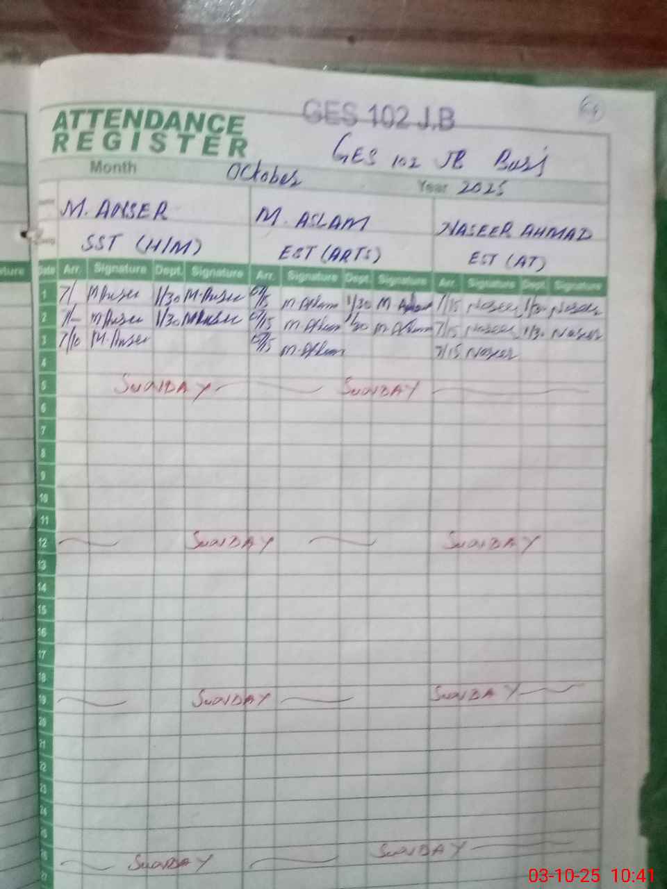| Monitoring Date: 03-10-2025 | Start Time: 03-10-2025 10:13 AM | End Time: 03-10-2025 11:14 AM | Name of MEA: Ma**** Al**** | |