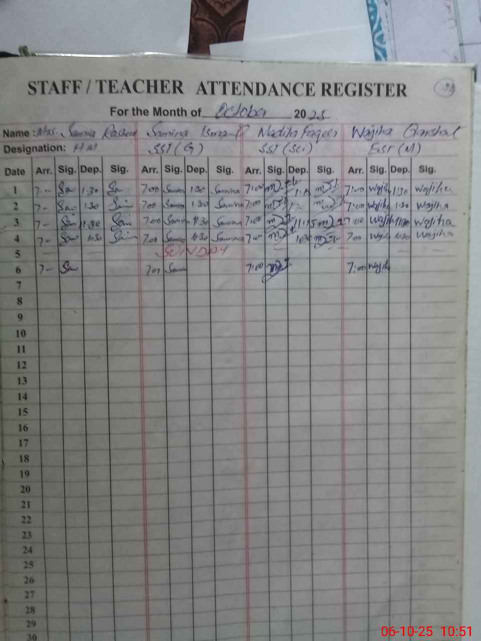 | Monitoring Date: 06-10-2025 | Start Time: 06-10-2025 10:43 AM | End Time: 06-10-2025 10:55 AM | Name of MEA: Ma**** Al**** | |