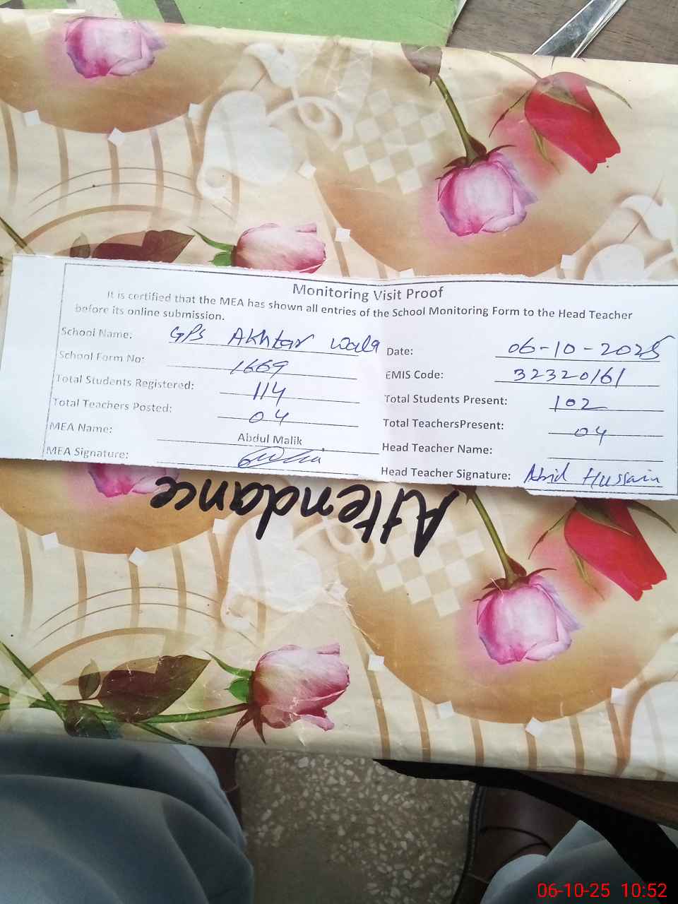 | EMIS Code: 32320161 | Name of School: GPS AKHTER WALA | |||