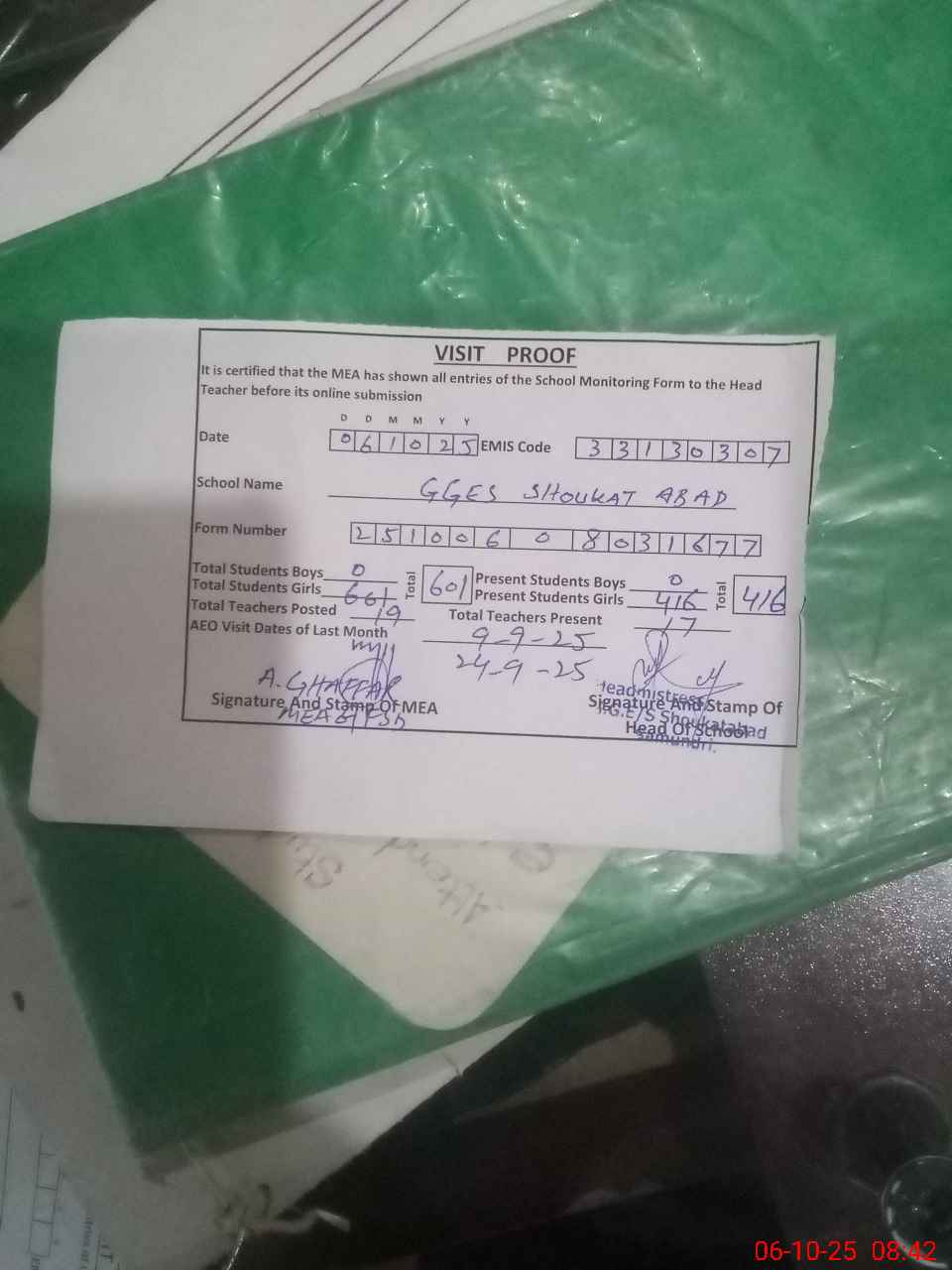 | EMIS Code: 33130307 | Name of School: GGES SHOUKAT ABAD SAMUNDARI | |||