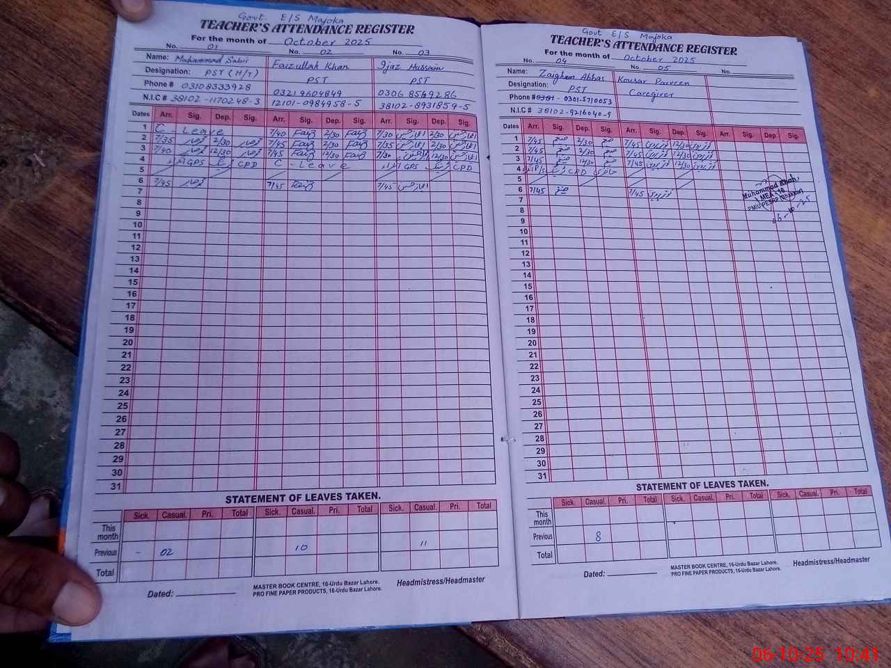 | Name: Mu**** Sa**** Designation: (School Headmaster's/Headmistress's) PST Phone/Cell Number: 03**** |