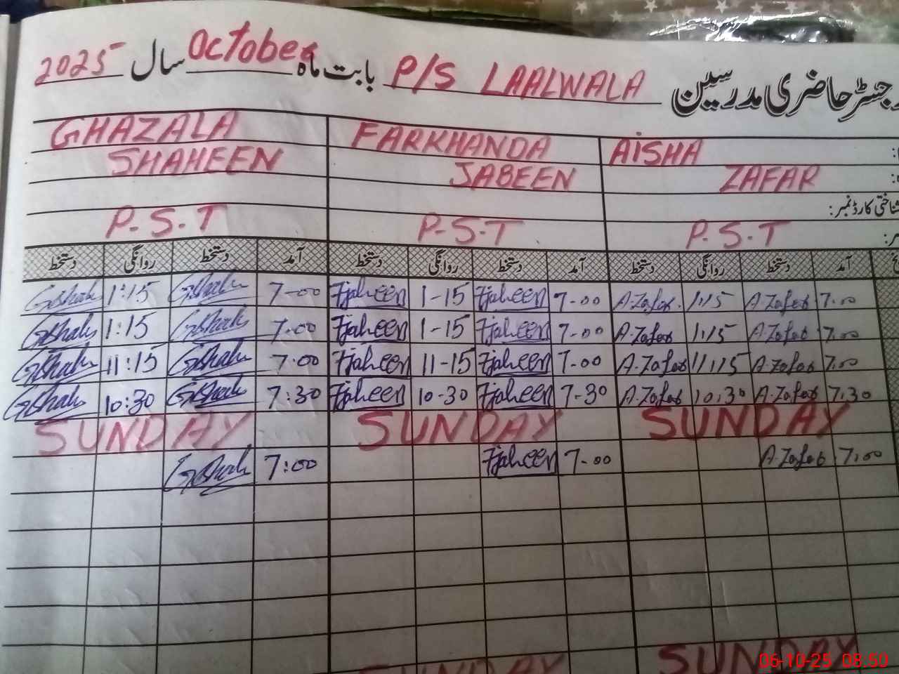| CNIC | Full Name | Designation | R/C | Absence During Last Calender Month |