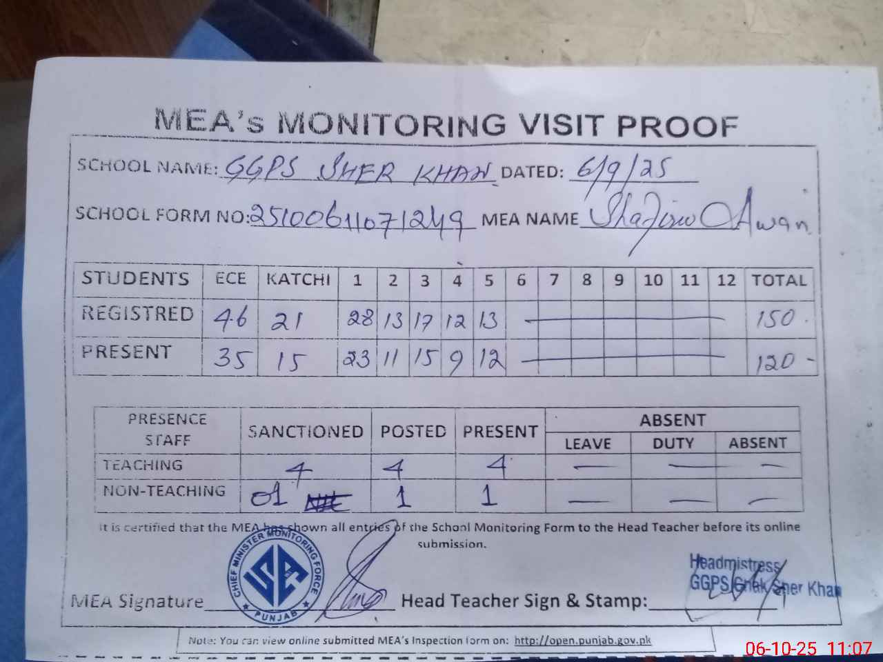 | EMIS Code: 36410345 | Name of School: GGPS SHER KHAN, KABIRWALA | |||