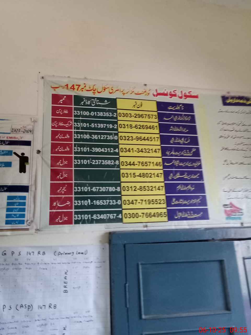 | EMIS Code: 33150151 | Name of School: GGPS CHAK NO 147 RB | |||