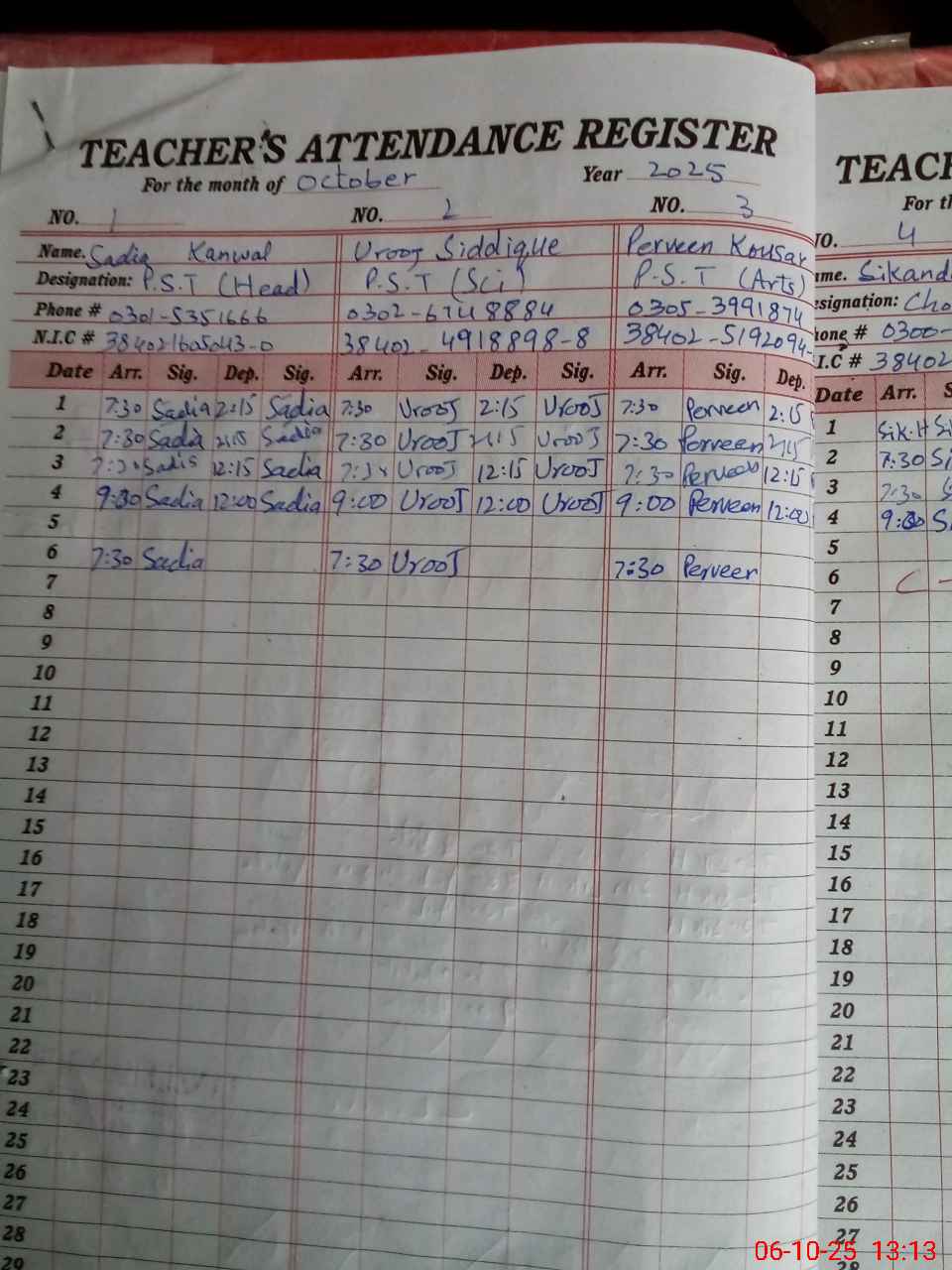 | Name: SA**** KA**** Designation: (School Headmaster's/Headmistress's) PST Phone/Cell Number: 03**** |