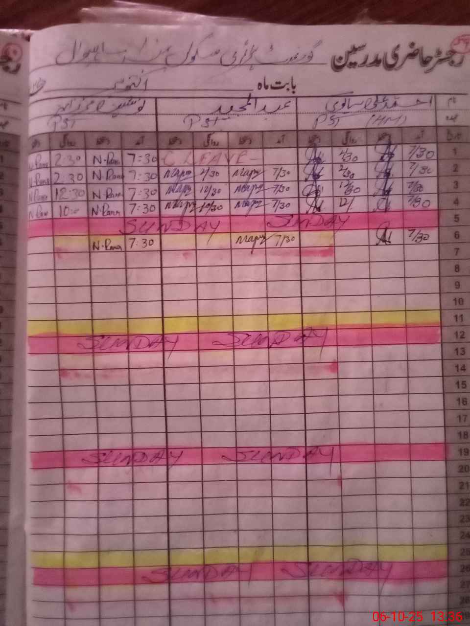 | CNIC | Full Name | Designation | R/C | Absence During Last Calender Month |
