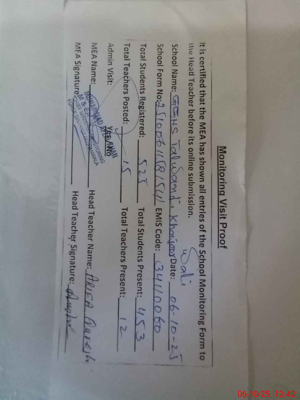 | EMIS Code: 34110060 | Name of School: GGHS TALWANDI KHAJOOR WALI | |||