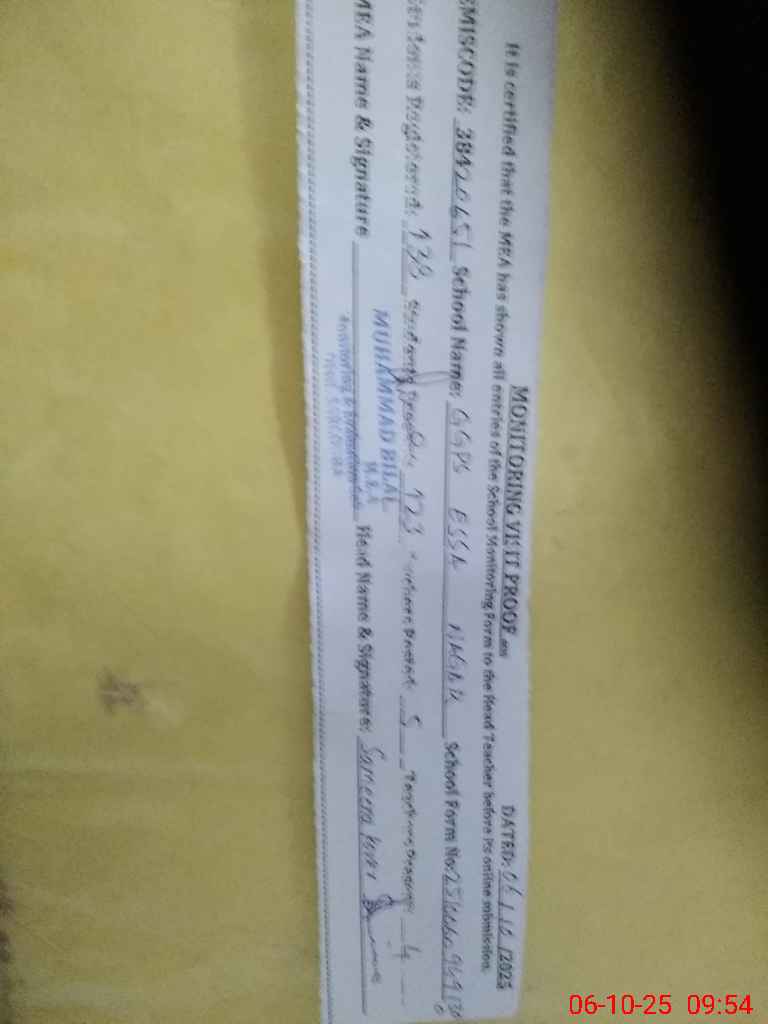 | Attendance Register | Head Teacher | MEA with School | Visit Proof |