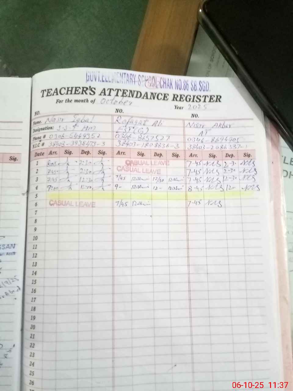 | Name: Na**** Iq**** Designation: (School Headmaster's/Headmistress's) SST Phone/Cell Number: 03**** |