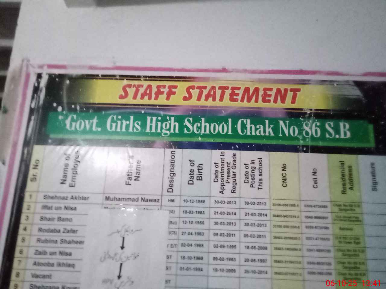 | EMIS Code: 38420057 | Name of School: GGHS CHAK NO.86 SB | |||