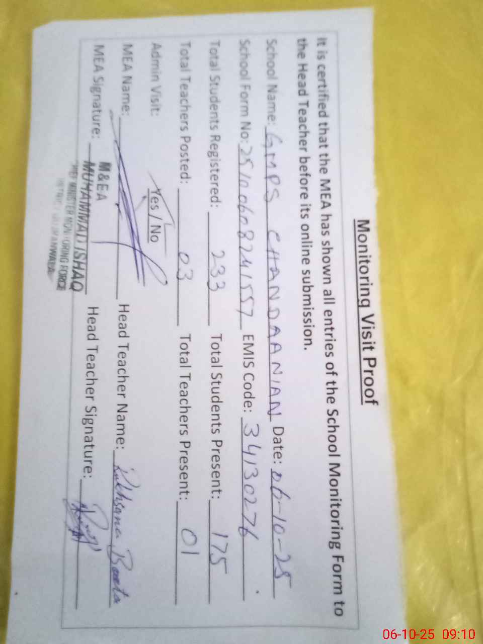 | EMIS Code: 34130276 | Name of School: GMPS CHANDANIAN | |||