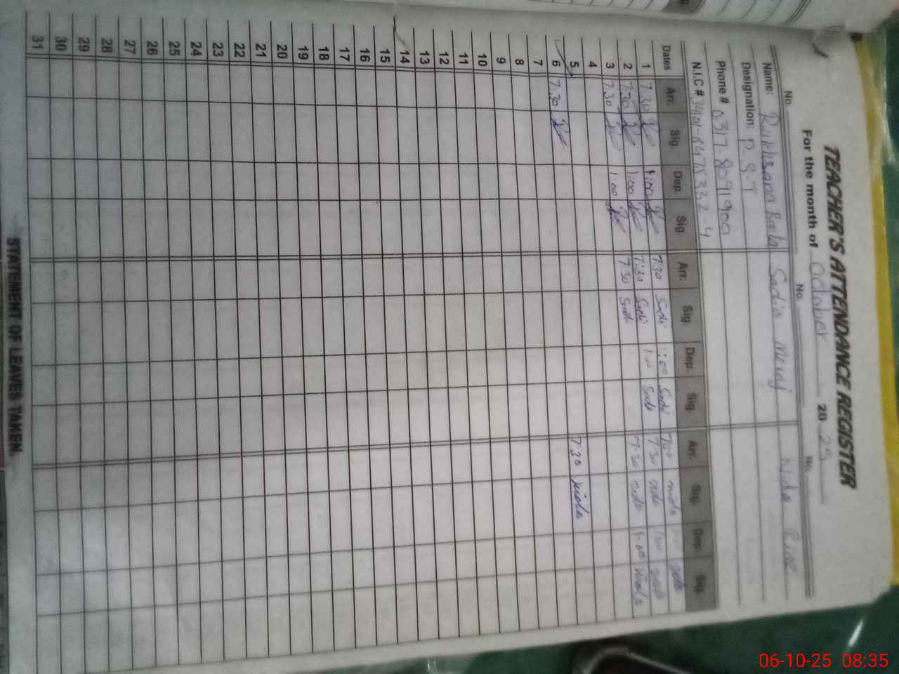 | Remarks (Use Separate Page if Required): School have two saprit building and one building is not in use FTF RECORD NOT SHOW DUE TO NOT COMPLETE Bondery wall in School is less then 5 ft PST NIDA RIAZ IS ABSENT FROM SCHOOL ADVANCE ATTENDANCE MARKS PST SADIA MERAJ IS ABSENT FROM SCHOOL NO LEAVE RECORD | |||||