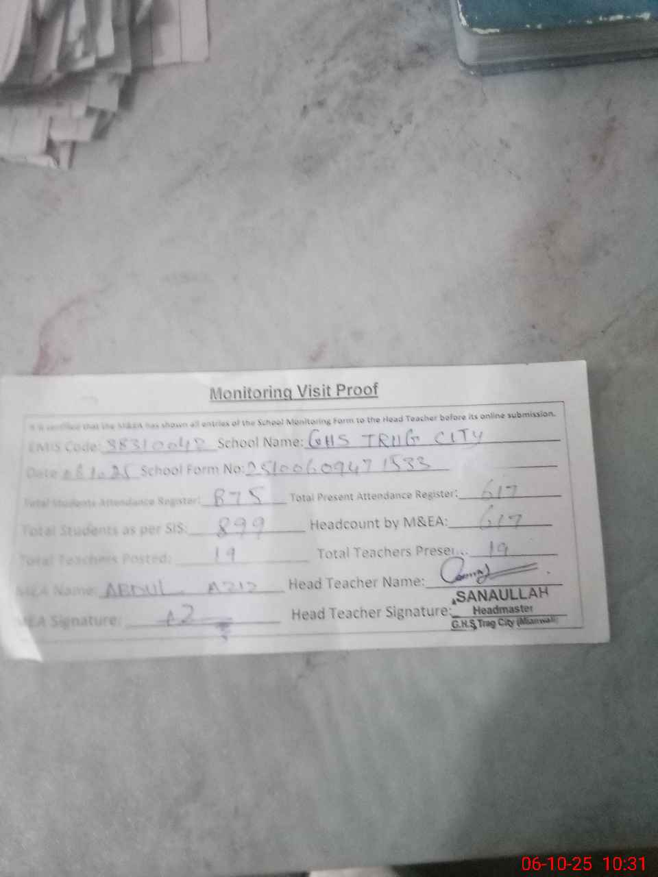 | EMIS Code: 38310042 | Name of School: GHS TRUG CITY | |||