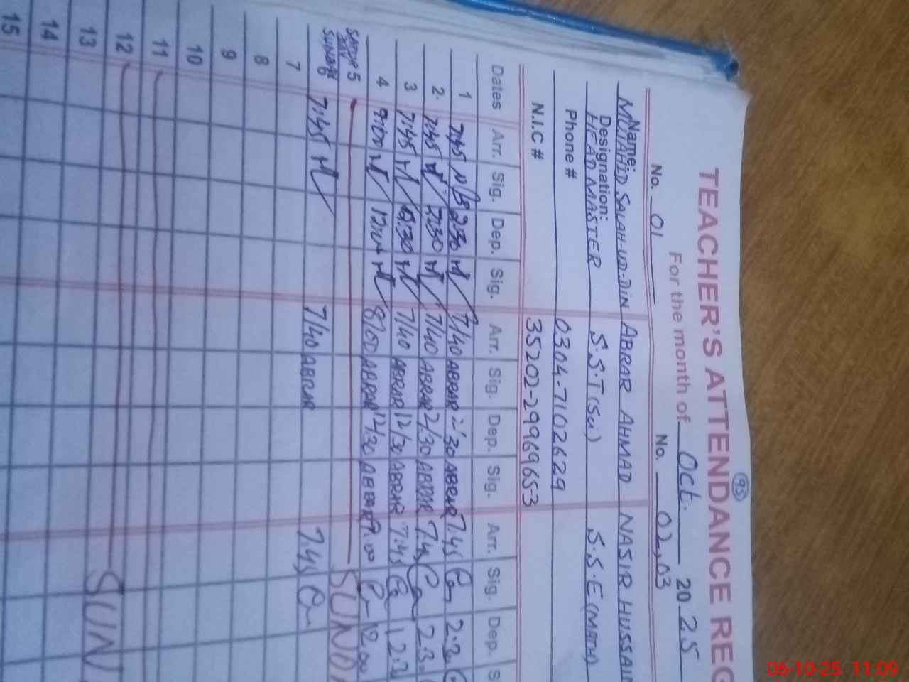 | Name: Mu**** Sa**** UdDi**** Designation: (School Headmaster's/Headmistress's) Head Master Phone/Cell Number: 03**** |