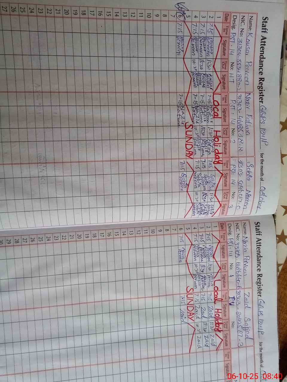 | CNIC | Full Name | Designation | R/C | Absence During Last Calender Month |