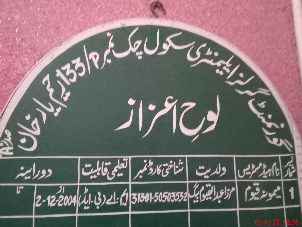 | Name: ME**** QA**** Designation: (School Headmaster's/Headmistress's) S.S.T.ARTS Phone/Cell Number: 03**** |
