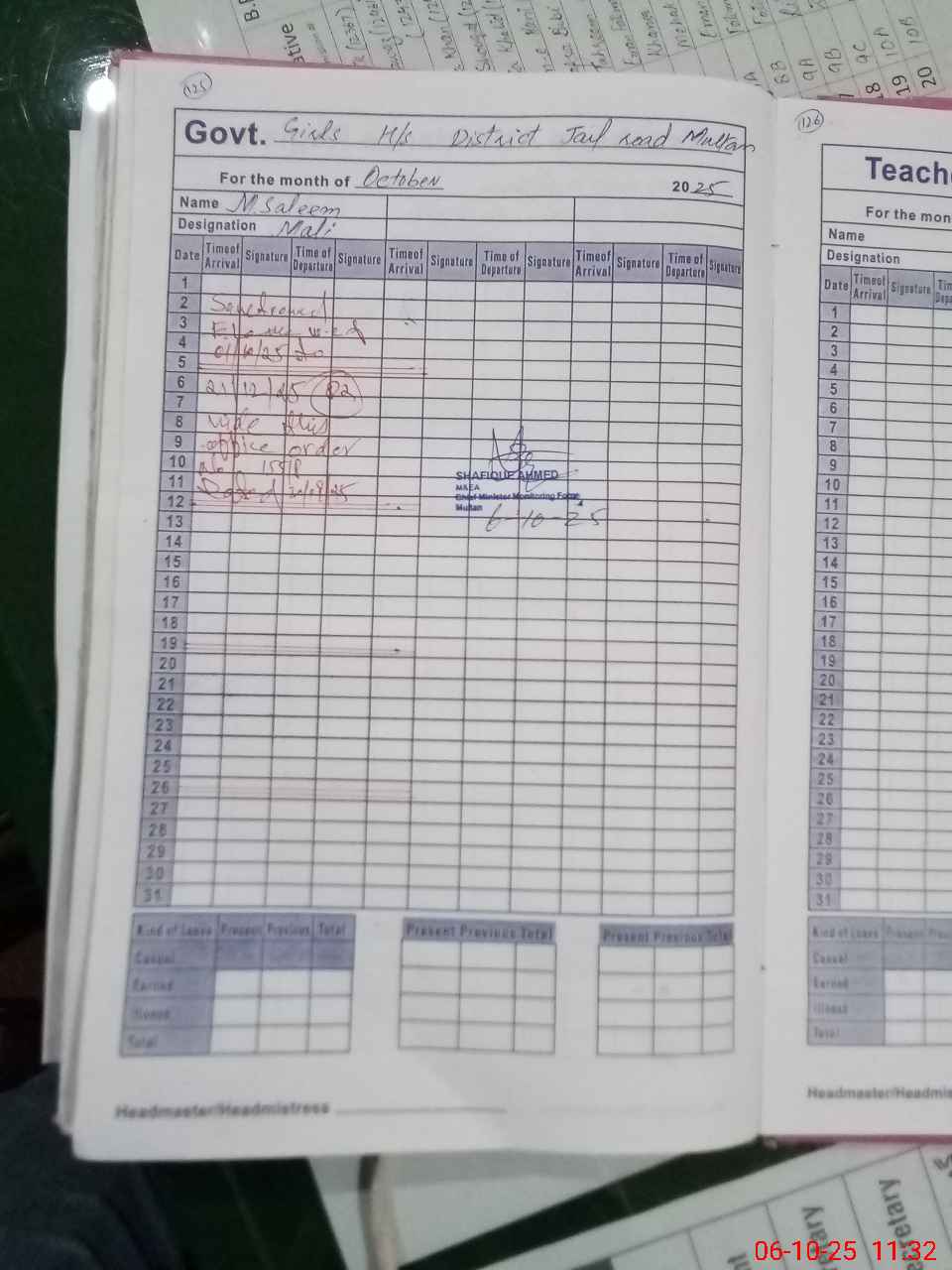 | Name: Az**** Ja**** Designation: (School Headmaster's/Headmistress's) Incharge Head Teacher Phone/Cell Number: 03**** |