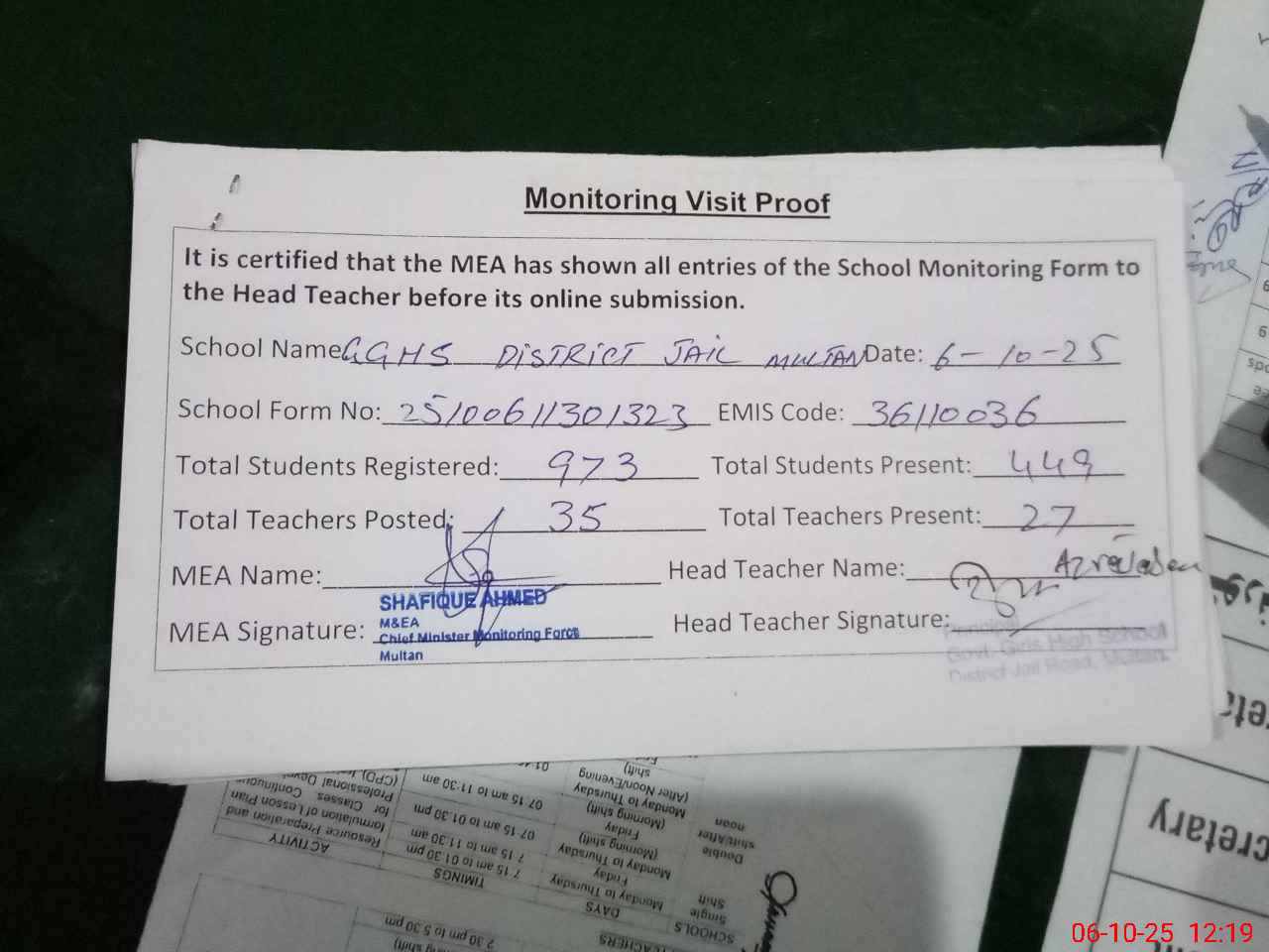 | EMIS Code: 36110036 | Name of School: GGHS DISTRICT JAIL ROAD MULTAN | |||