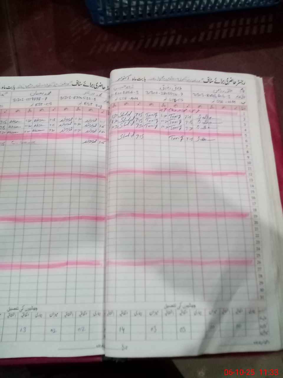 | CNIC | Full Name | Designation | R/C | Absence during last cal. month |