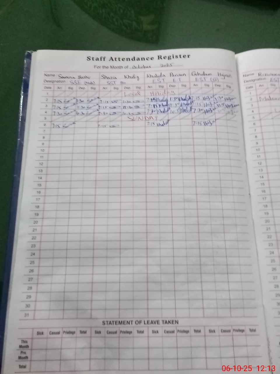 | CNIC | Full Name | Designation | R/C | Absence During Last Calender Month |