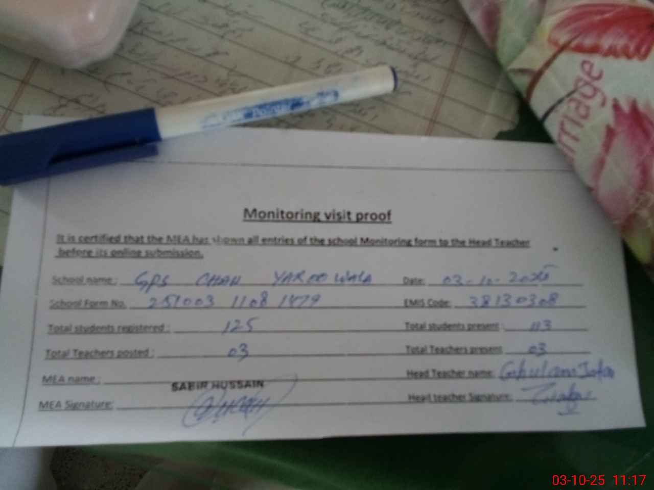 | EMIS Code: 38130308 | Name of School: GPS CHAH YAROO WALA | |||